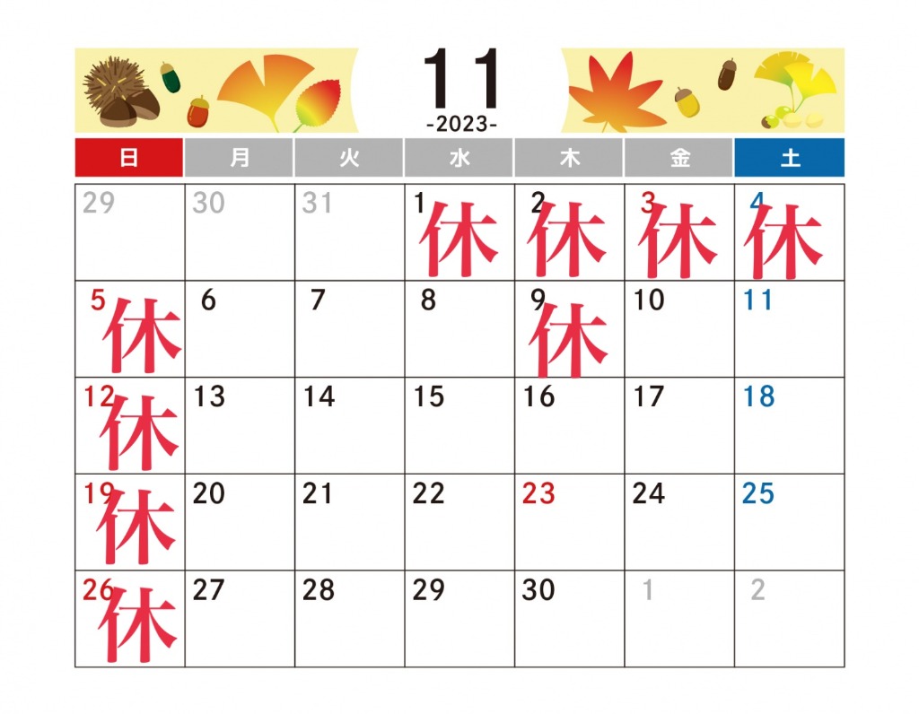今月の営業日アップしました!