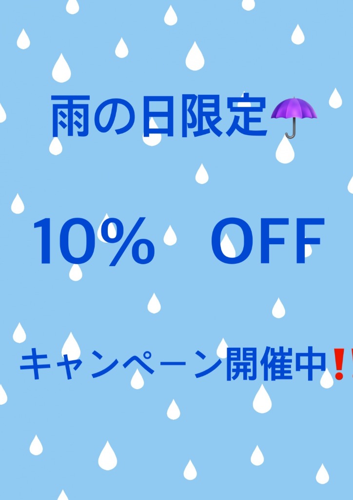 雨の日限定、10%オフキャンペーンも梅雨が明けるまで開催中!!