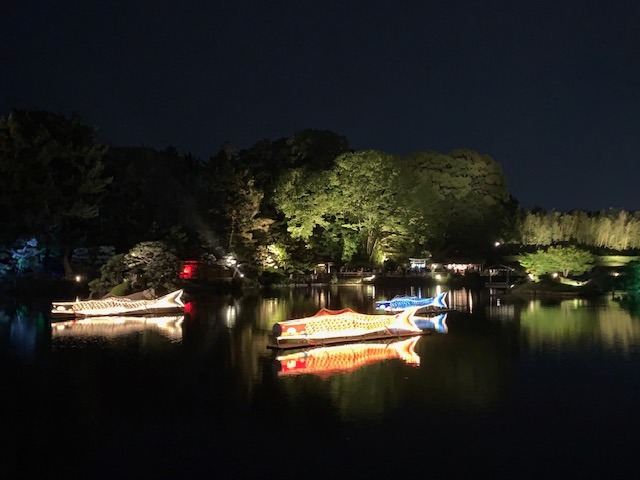 この季節の夜は過ごしやすく、ライトアップされた庭園やお城にテンションも上がります!