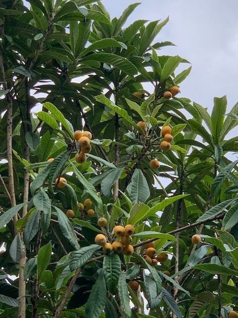 実家の木々もあじさいやらびわの実などが咲き始め、色とりどりです(^^♪