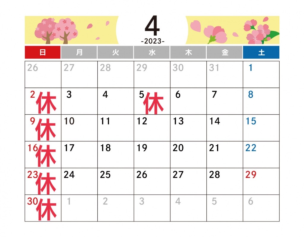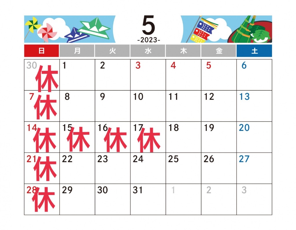 ☆ゴールデンウィーク及び5月の営業日☆